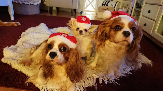 Vaikka olinkin töissä aatonaattona niin siitä huolimatta meille tuli joulu. Ja kaikki koirat paitsi viisikko pääsivät toivottamaan kaikille kavereille hyvää joulua....