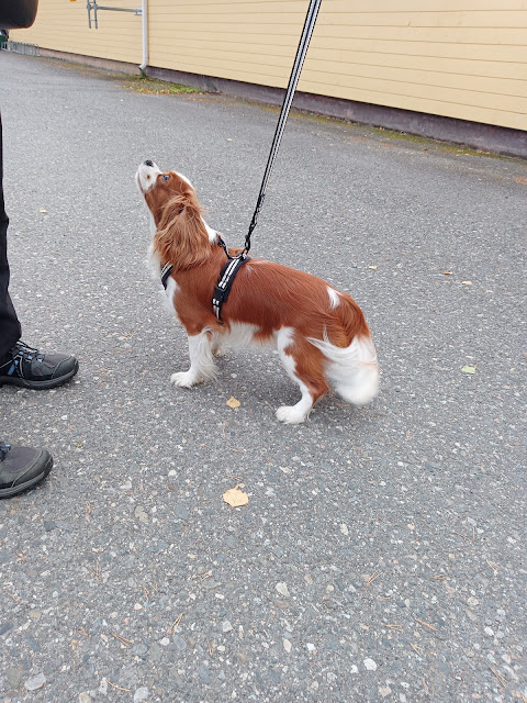 Syksy meillä onkin sitten mennyt ihan täysin töissä ja Lili on päässyt käymään myös pentukurssilla. Tässä Lilyllä oli ensimmäinen pentukurssipäivä takan. Muuten kurssi meni ihan hyvin paitsi että kaikki muut koirat sekä ihmiset oli pelottavia ja niitä piti kokoajan haukkua, mutta luoksetulo sujui tosi mallikkaasti. Mutta sitä vartenhan me siellä olemme että muutkin koirat ja ihmiset tulisivat tutuiksi ja se haukkuminen loppuisi, sitä opetellaan.